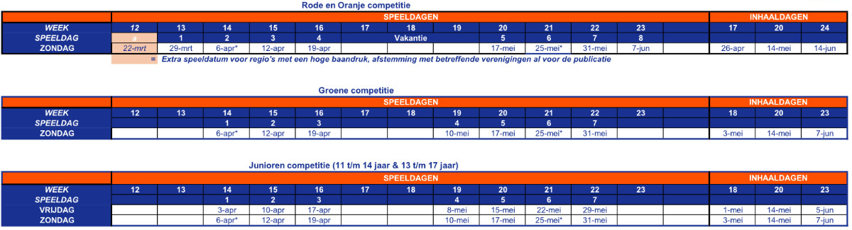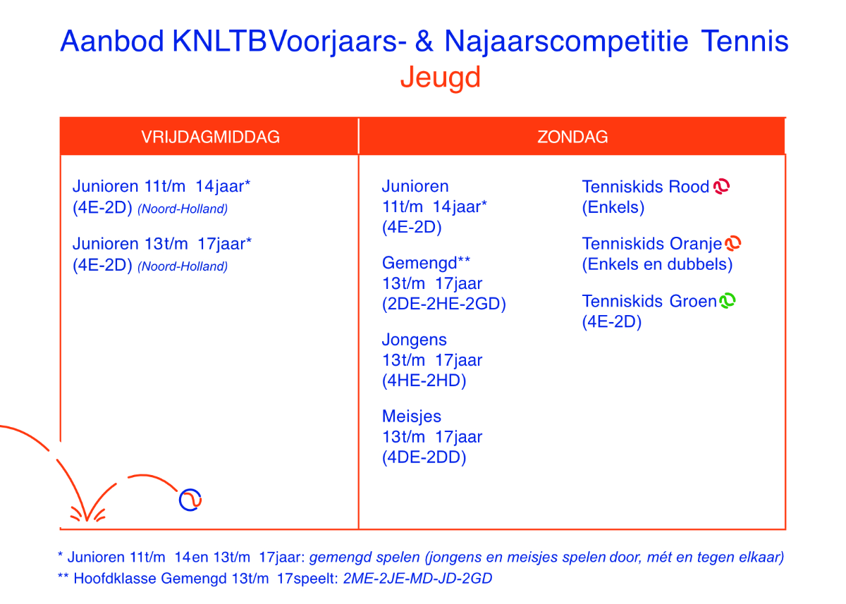 Speelschema van de JEUGD tenniscompetitie voorjaar 2026