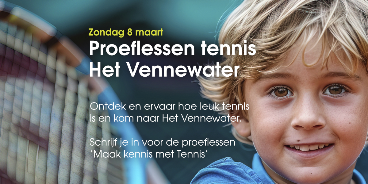 Ontdek en ervaar hoe leuk tennis is en kom naar Het Vennewater. Schrijf je in voor de proeflessen ‘Maak kennis met Tennis’